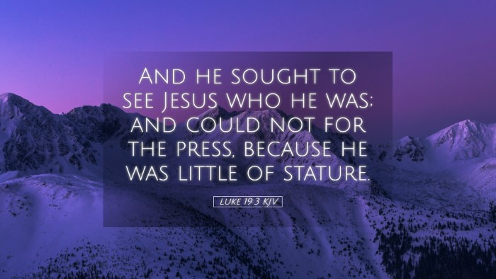 Luke 19:3 encapsulates a multifaceted narrative that speaks to the heart of Christian faith. Zacchaeus's story is a powerful reminder that encountering Jesus often requires overcoming social and personal obstacles. Through the insights of ancient commentators, we glean not only the depth of this passage but also its abiding relevance today. This encounter with Christ opens pathways to transformation, extending grace to all who earnestly seek Him.