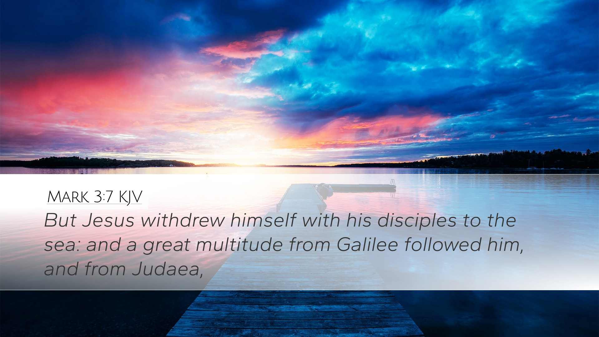 Verse Context: Mark 3:7 states, “But Jesus withdrew himself with his disciples to the sea: and a great multitude from Galilee followed him, and from Judaea,” (KJV). This verse marks a transitional moment in Jesus' ministry, where a growing number of people are drawn to His teachings and miracles.